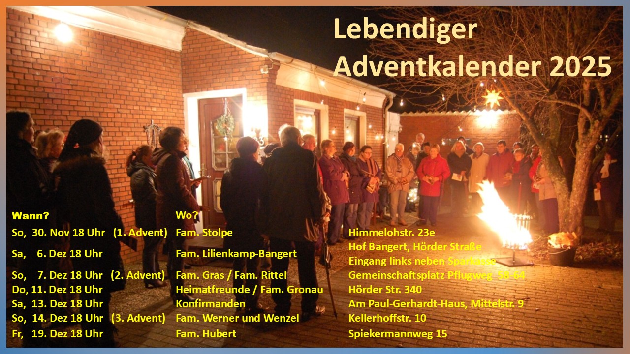 ... das können wir Stockumer auch in diesem Jahr! Acht Familien, die Heimatfreunde und unsere Konfi-Gruppe stellen ihren Eingangshof / ihren Vorgarten zur Verfügung, um gemeinsam  - mancherorts auch mit einem kleinen, gemütlichen Lagerfeuer - zu singen, Andacht zu halten...