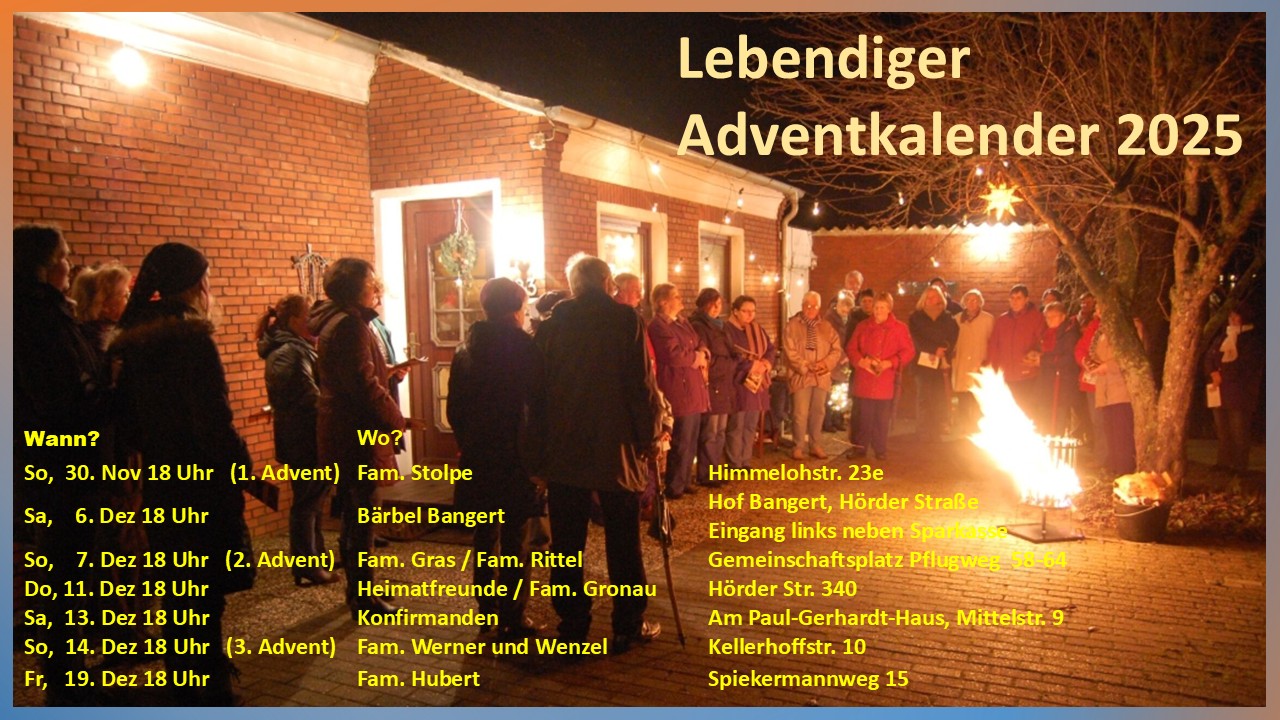 ... das können wir Stockumer auch in diesem Jahr! Acht Familien, die Heimatfreunde und unsere Konfi-Gruppe stellen ihren Eingangshof / ihren Vorgarten zur Verfügung, um gemeinsam - mancherorts auch mit einem kleinen, gemütlichen Lagerfeuer - zu singen, Andacht zu halten...