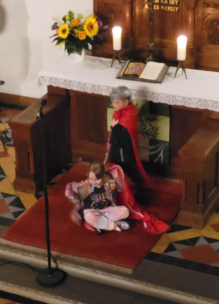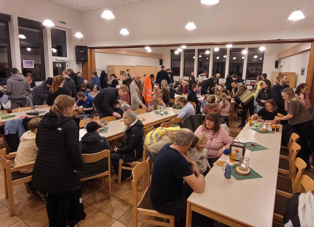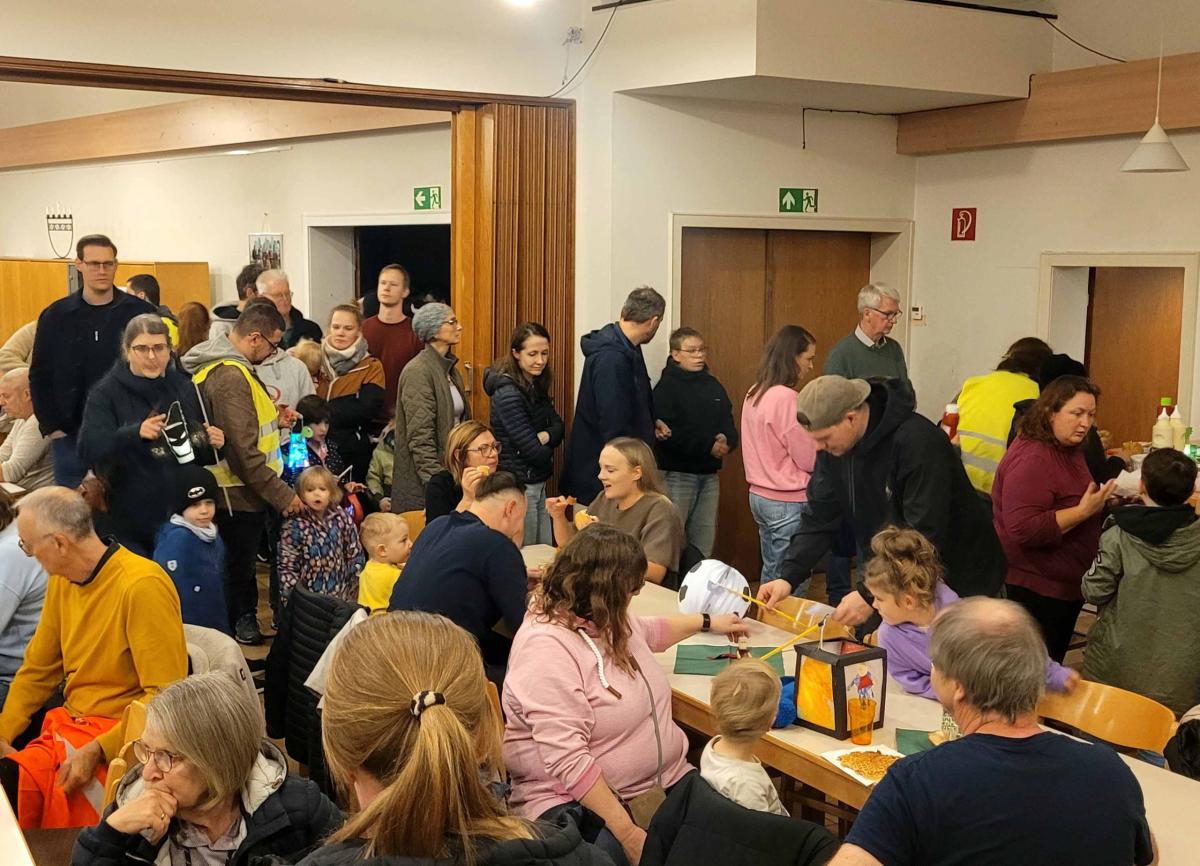 Bilder vom diesjährigen Martinsumzug zeigen, dass so Einiges los war: Weil teils draußen und im Dunkeln aufgenommen, sind sie jetzt keine Meisterwerke, aber eine schöne Erinnerung. War bereits die Kirche vor dem Umzug gut gefüllt, geriet das Gemeindehaus danach an seine Kapazitätsgrenze. Da dauerte es schon mal einen kleinen Moment, bis man in den Genuss von Currywurst und Hot-Dogs kam. Aber das junge Team von Julia Heusener hat das gut gemeistert. Vielen Dank auch an den Bläserkreis für die musikalische Begleitung, an Pfarrer Janetzki für die einleitenden Worte und den Markus-Kindergarten für die Organisation und das kleine Schauspiel im Altarraum, wo eindrucksvoll St. Martin seinen Mantel teilt, um den frierenden Bettler zu wärmen.