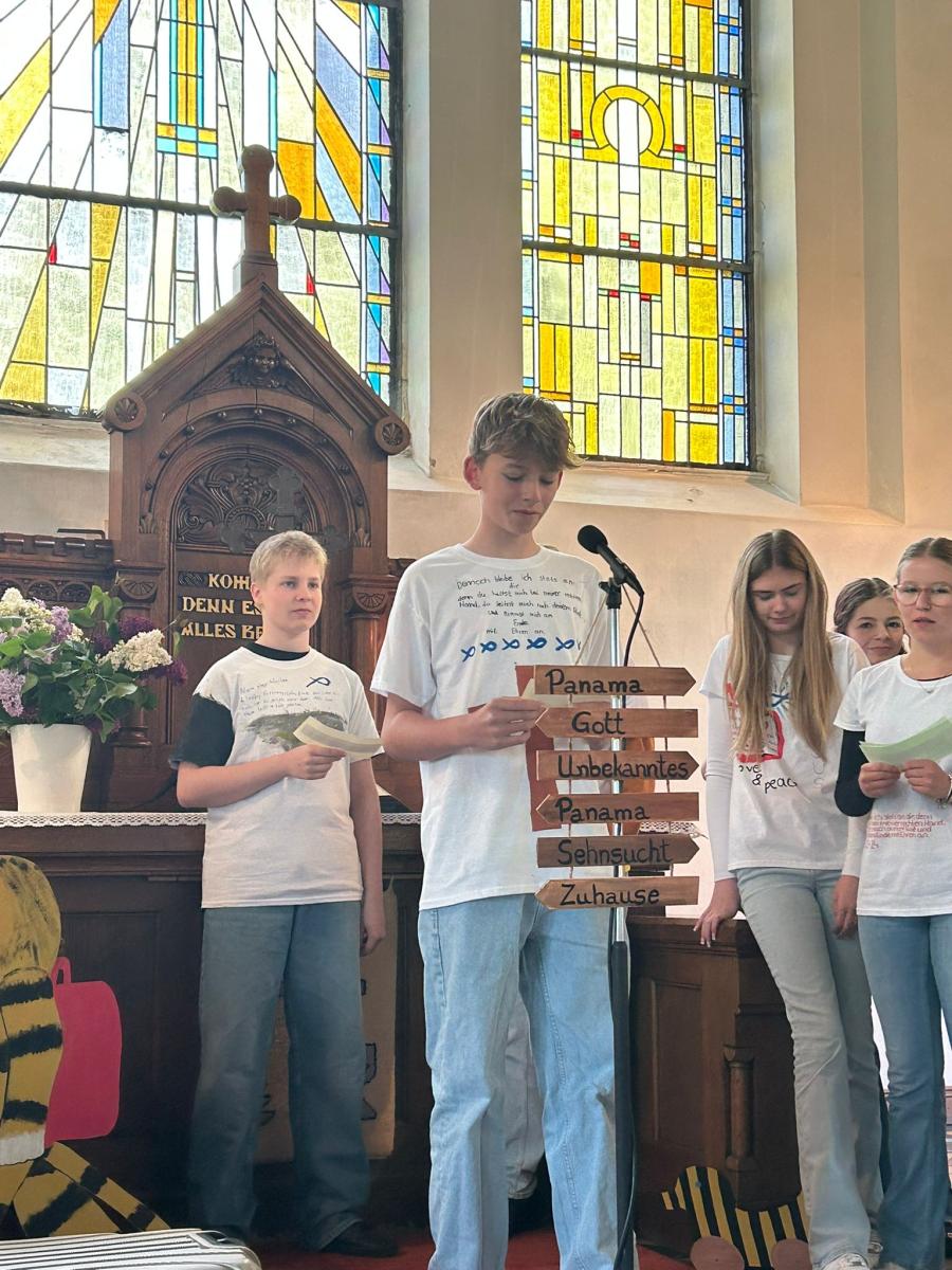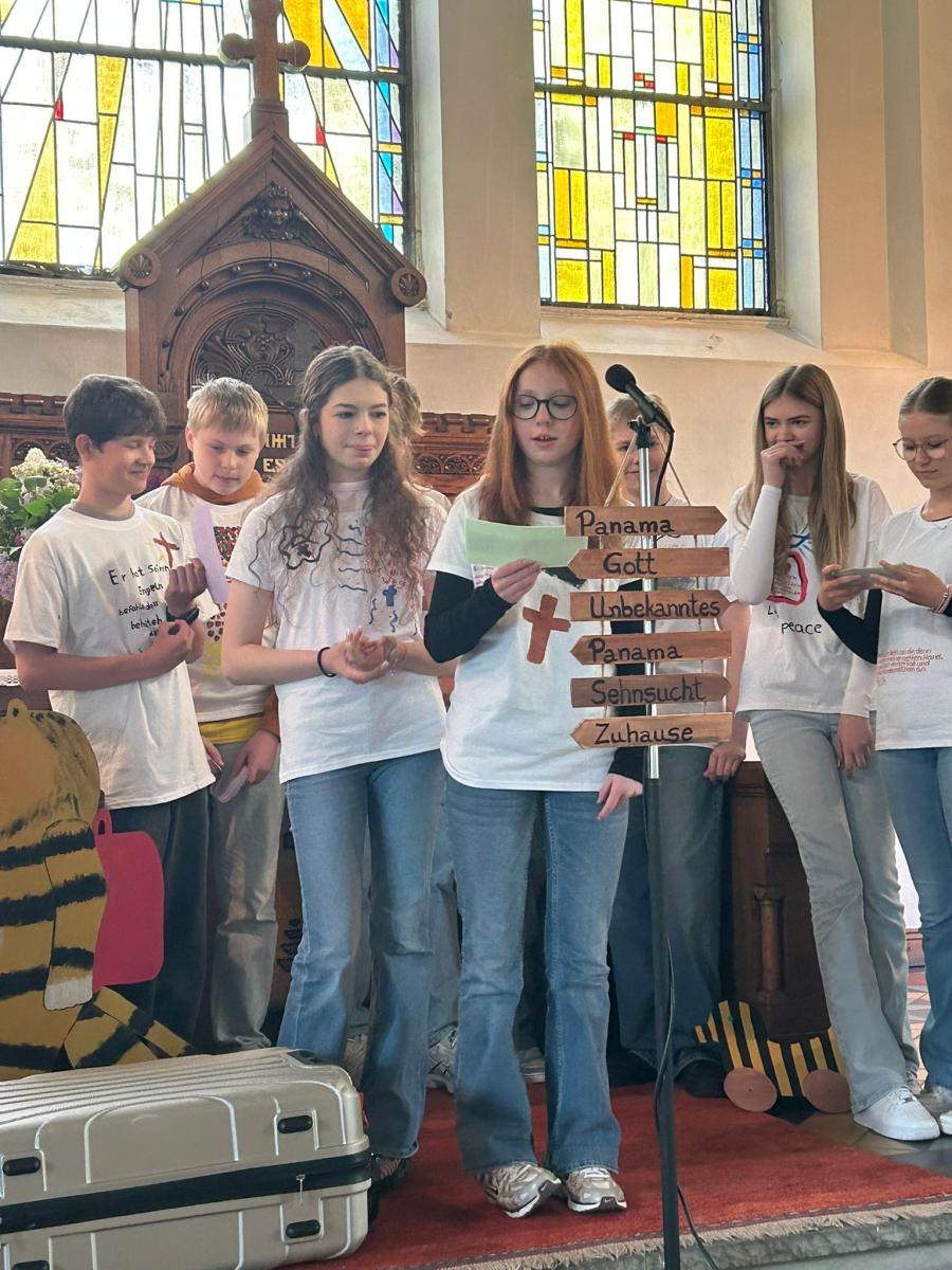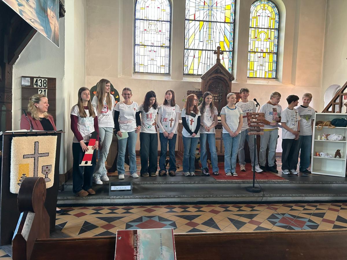Am Sonntag, dem 26. April, stellte sich die neue Konfirmandengruppe im Gottesdienst der Gemeinde vor. Unter der Leitung von unserer Jugendpresbyterin Julia Heusener haben die Jugendlichen nach der Geschichte des Jugendbuchautors Janosch den Mut seiner Protagonisten Tiger und Bär, deren Neugier und Freude, Neues zu entdecken, thematisiert und übertragen auf ihre Situation. Auch sie bereiten sich vor auf etwas Neues, nämlich mit Gott und unter seiner Obhut in das Erwachsenenleben einzutreten, mutig und neugierig auf das, was da kommen wird….Dazu wünschen wir ihnen viel Glück und Gottes Segen!