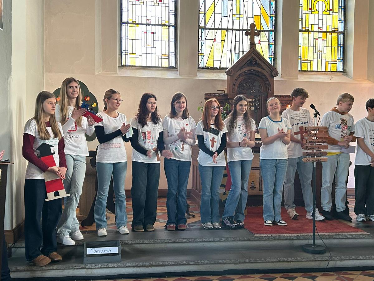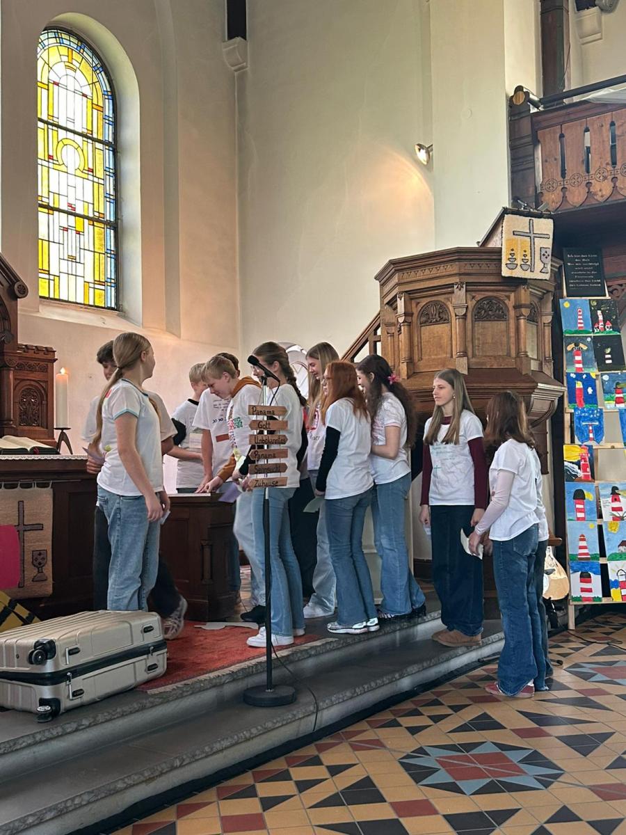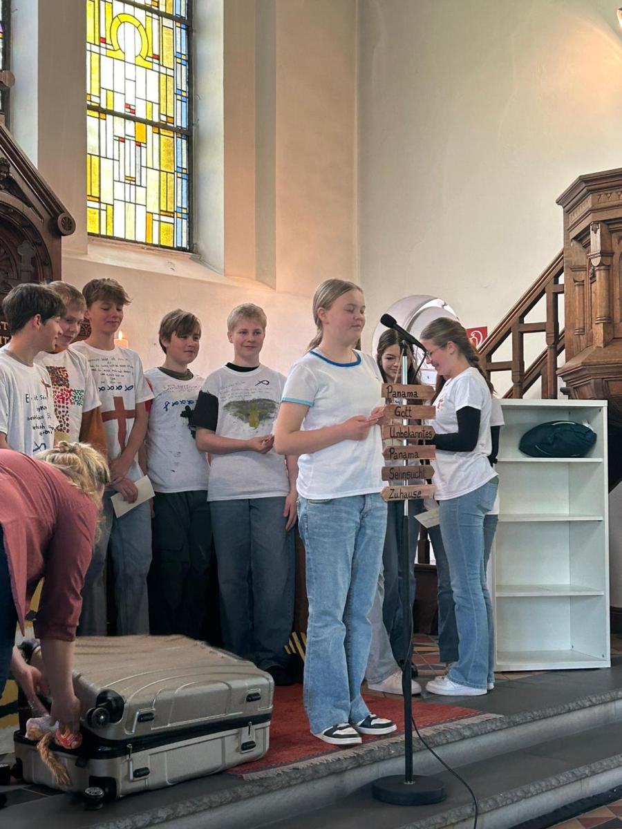 Am Sonntag, dem 26. April, stellte sich die neue Konfirmandengruppe im Gottesdienst der Gemeinde vor. Unter der Leitung von unserer Jugendpresbyterin Julia Heusener haben die Jugendlichen nach der Geschichte des Jugendbuchautors Janosch den Mut seiner Protagonisten Tiger und Bär, deren Neugier und Freude, Neues zu entdecken, thematisiert und übertragen auf ihre Situation. Auch sie bereiten sich vor auf etwas Neues, nämlich mit Gott und unter seiner Obhut in das Erwachsenenleben einzutreten, mutig und neugierig auf das, was da kommen wird….Dazu wünschen wir ihnen viel Glück und Gottes Segen!